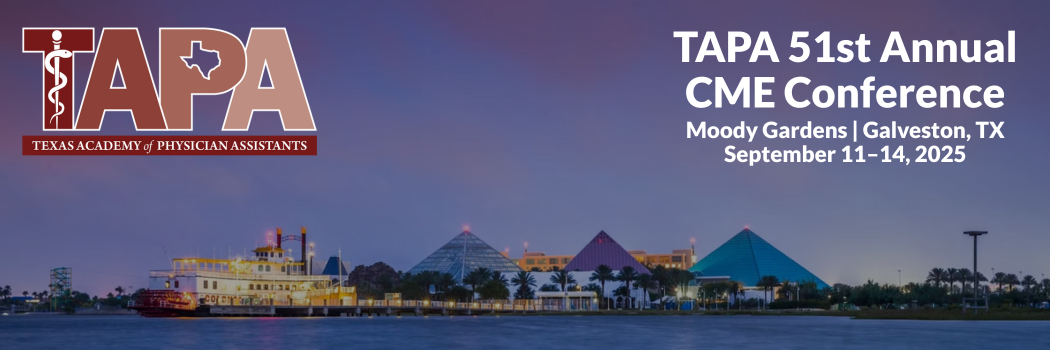 ![]() TAPA's 51st Annual CME ConferenceSeptember 11–14, 2025 | Moody Gardens | Galveston, TXThank You for Attending!The 51st Annual CME Conference was a success because of you. Your energy, positivity and contributions created an engaging and memorable experience for everyone in attendance. We are grateful to each PA, student, speaker, exhibitor, sponsor and volunteer who joined us in Galveston. We’ll be announcing next year’s dates and location soon—stay tuned! In the meantime, relive the highlights and enjoy some of our favorite moments captured by the TAPA team in the photo gallery below. |
